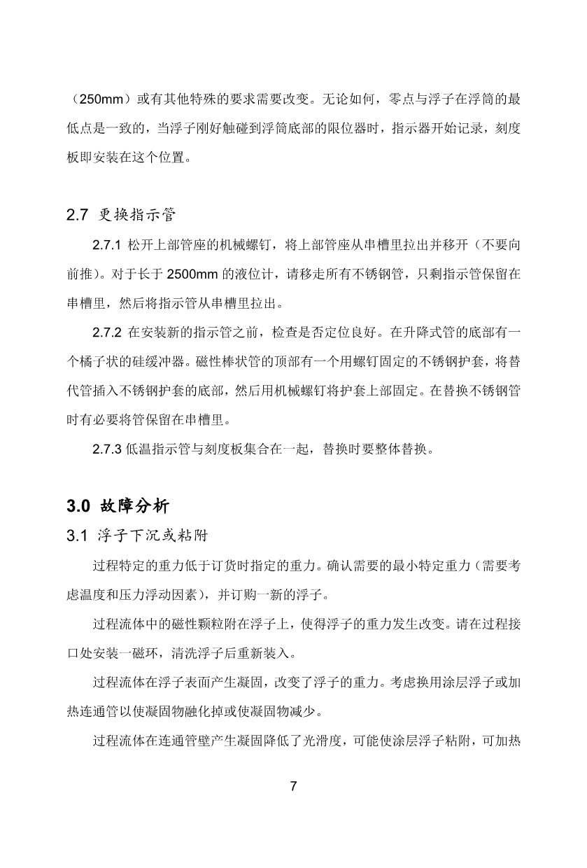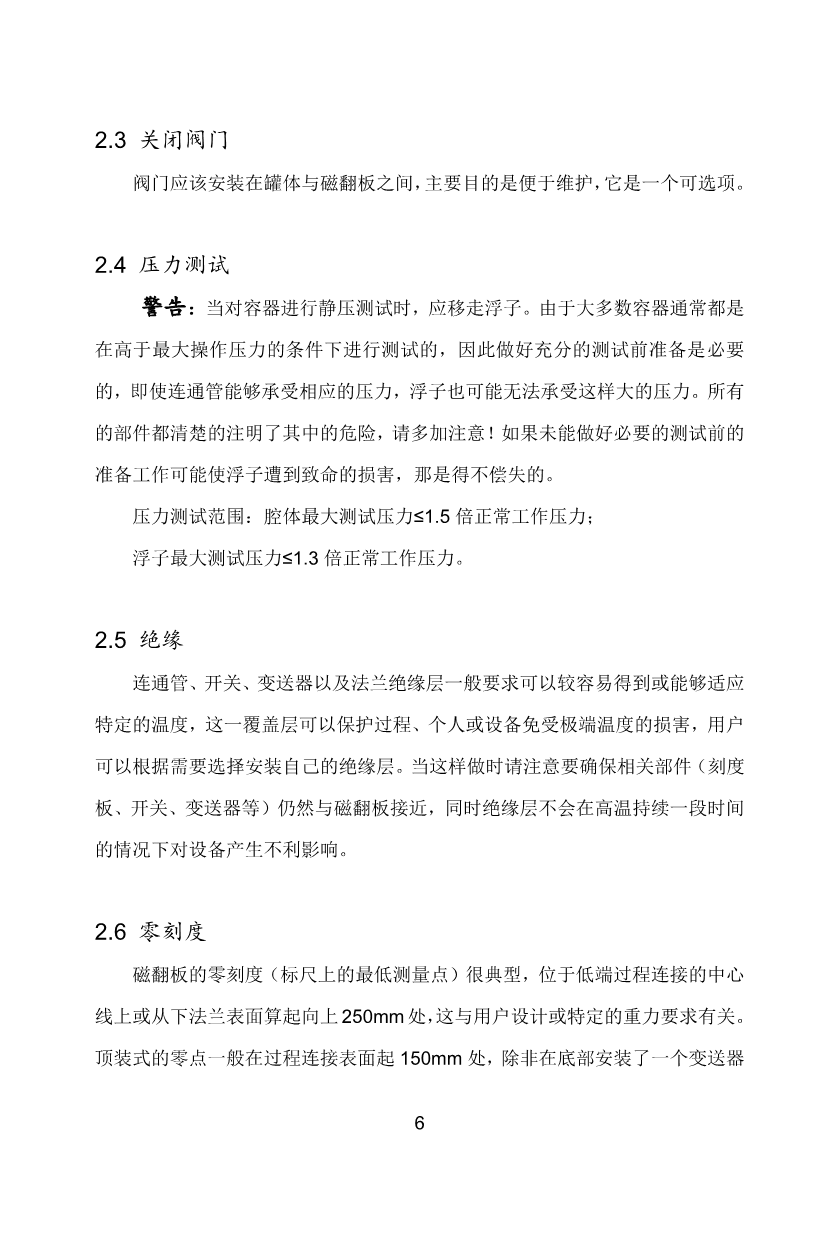 磁翻板液位計的基本結(jié)構(gòu)包括浮子、浮子連通管和指示器。浮子連通管與過程容器直接相連。連通管內(nèi)含一個磁性浮子,在測量時浮子有2/3浸在過程液體內(nèi)。與連通管連在一起的指示器包括一個密閉的玻璃管或者是聚碳酸酯管,管內(nèi)帶可翻轉(zhuǎn)的磁翻片,并帶與設(shè)計的測量范圍對應(yīng)的分度標(biāo)尺。指示器與浮子連通管綁在一塊,在浮子與磁翻片之間存在磁耦合,當(dāng)浮子隨著液位的變化而改變位置時,磁翻片通過磁耦合的原理,將會跟著浮子的升降發(fā)生相應(yīng)的翻轉(zhuǎn)。可安全應(yīng)用于易燃、強(qiáng)腐蝕性和有毒液體介質(zhì)的測量;同時磁翻板液位計所具有的堅固的結(jié)構(gòu),使其可應(yīng)用于操作條件超過普通玻璃應(yīng)用極限的場合,比如極高溫度或極大壓力場合。